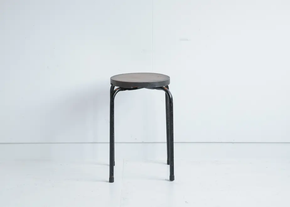 脚は、どこにでもあるビニールの座面のパイプスツール。